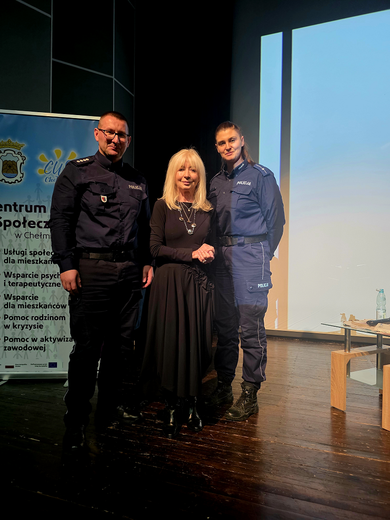 Policjanci z Chełmna wzięli udział w spotkaniu z sędzią Anną Marią Wesołowską, zorganizowanym przez Centrum Usług Społecznych w Chełmnie. Wydarzenie odbyło się w ramach ogólnopolskiej kampanii „Dzieciństwo bez przemocy” i zgromadziło przedstawicieli wielu instytucji pracujących z dziećmi i młodzieżą.