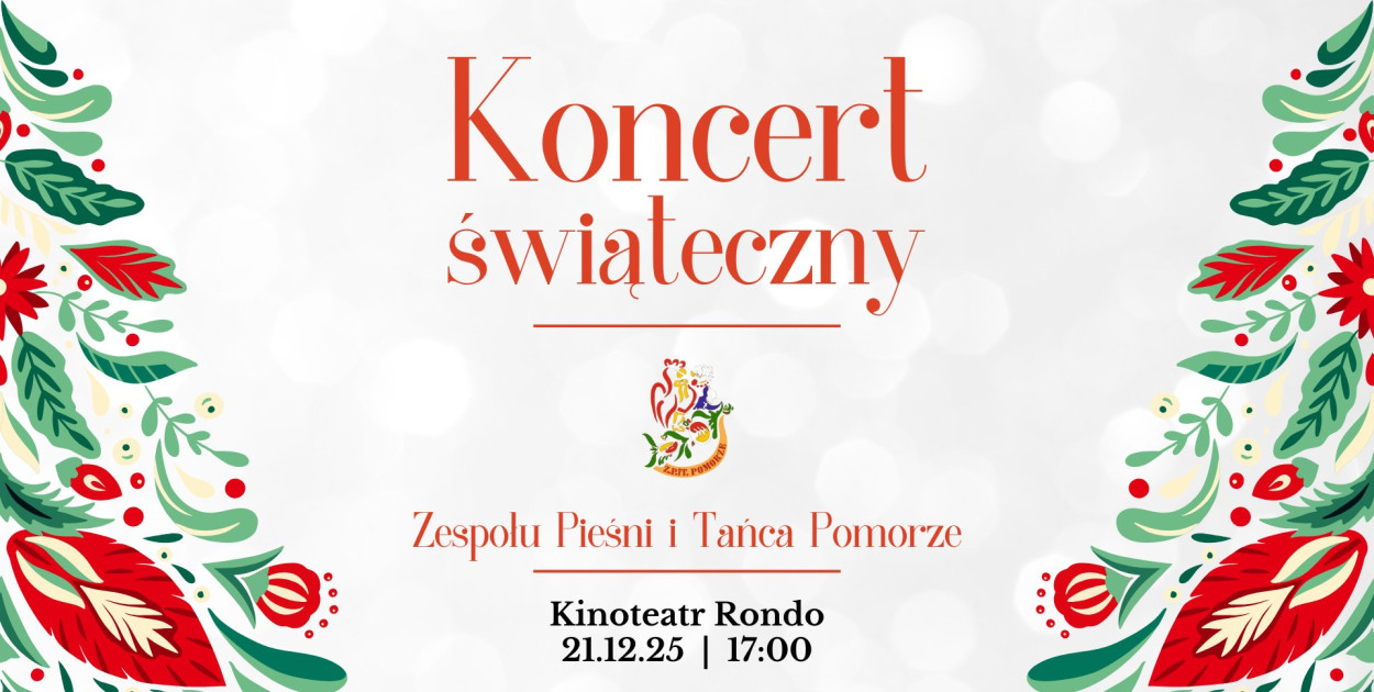 Zespół Pieśni i Tańca „Pomorze” zaprasza na coroczny Koncert Świąteczny w czasie którego będzie można usłyszeć najpiękniejsze polskie kolędy oraz żywiołowe pastorałki, obejrzeć tańce wybranych regionów Polski, a to wszystko w towarzystwie Kapeli Zespołu Pieśni i Tańca „Pomorze”.