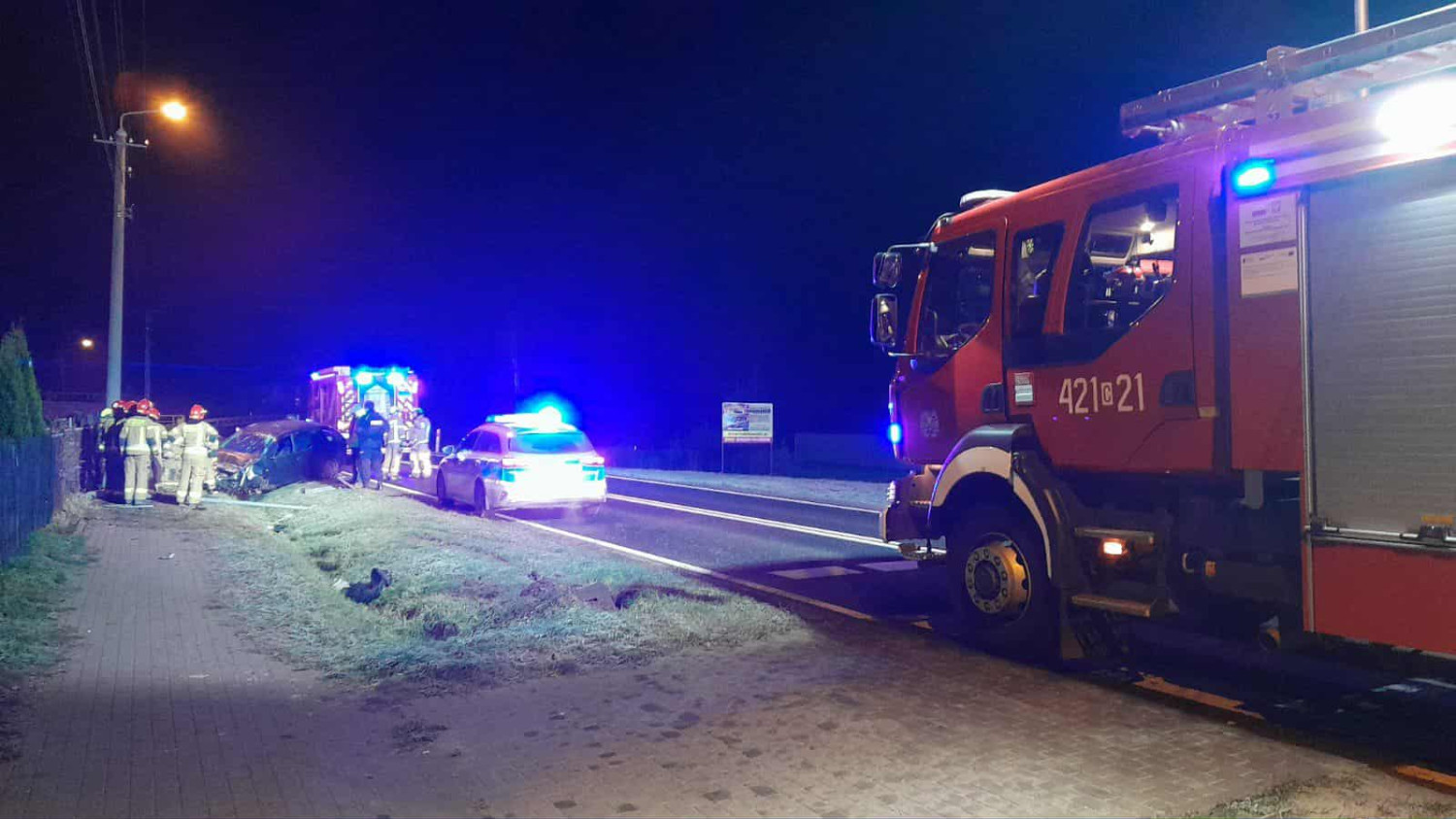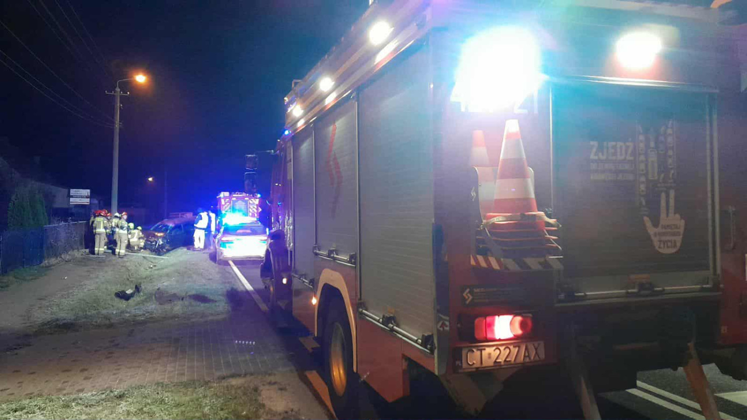 Działania ratownicze, obejmujące zabezpieczenie miejsca zdarzenia, odłączenie akumulatora oraz uprzątnięcie jezdni, trwały ponad godzinę. Straty po dachowaniu oszacowano na około 20 tysięcy złotych.