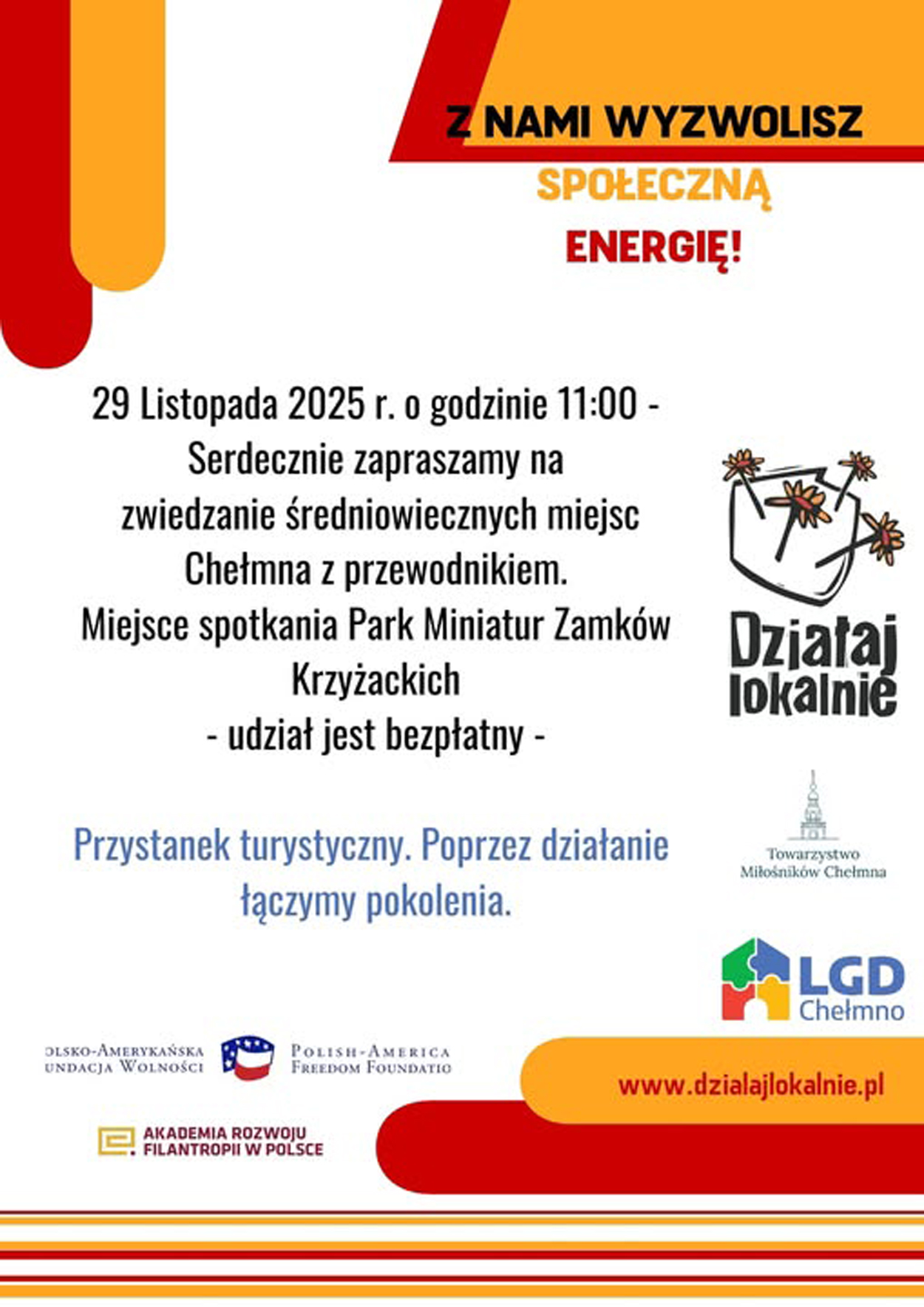 Przedsięwzięcie realizowane w ramach projektu "Przystanek turystyczny. Poprzez działania łączymy pokolenia" w ramach programu Działaj lokalnie 2025.