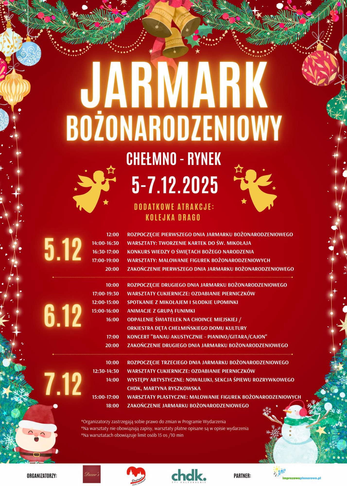 Z ogromną radością zapraszamy Was na Jarmark Bożonarodzeniowy w Chełmnie, którego mamy przyjemność być współorganizatorami!
