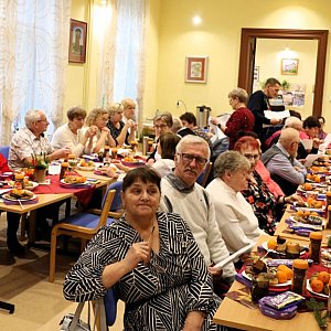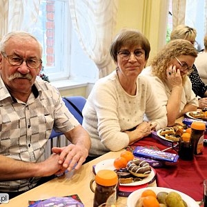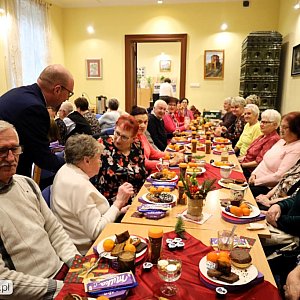 Igor Kornowicz zagrał znane kolędy, zachęcając seniorów do wspólnych śpiewów. To spotkanie nie tylko umiliło czas, ale także stało się okazją do rozmów, wspólnego cieszenia się towarzystwem przy gorących napojach oraz poczęstunku.