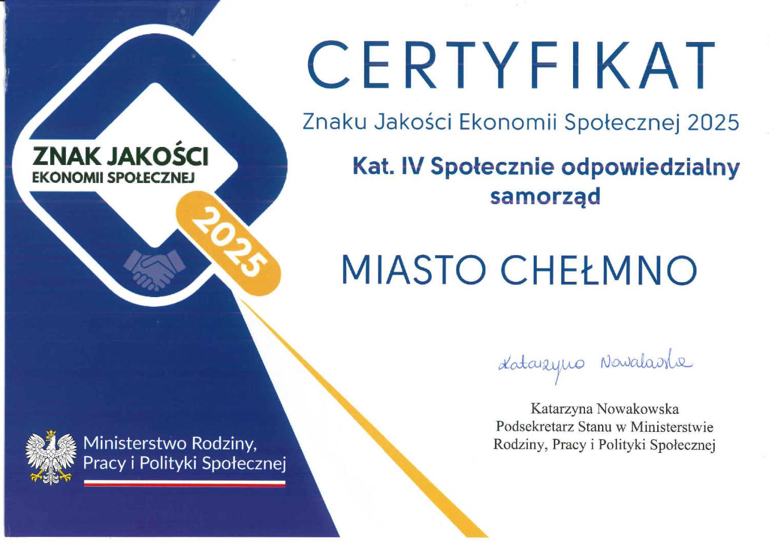 Z dumą informujemy, że nasze miasto zostało wyróżnione przez Ministerstwo Rodziny, Pracy i Polityki Społecznej w kategorii „Społecznie odpowiedzialny samorząd”.
