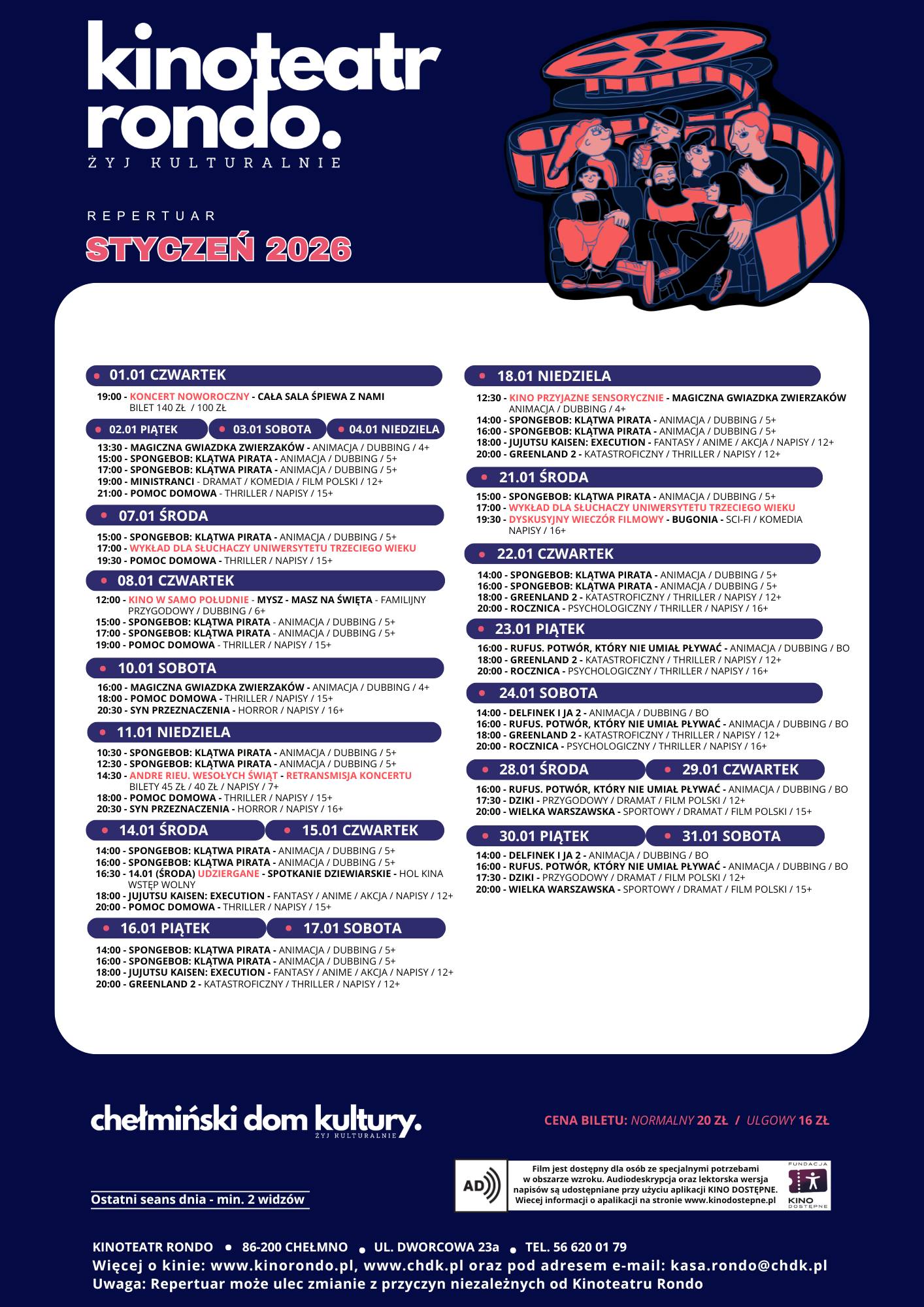 Nowy rok zaczniemy filmowo i kulturalnie. W styczniowym repertuarze Kinoteatru Rondo czekają na Was: