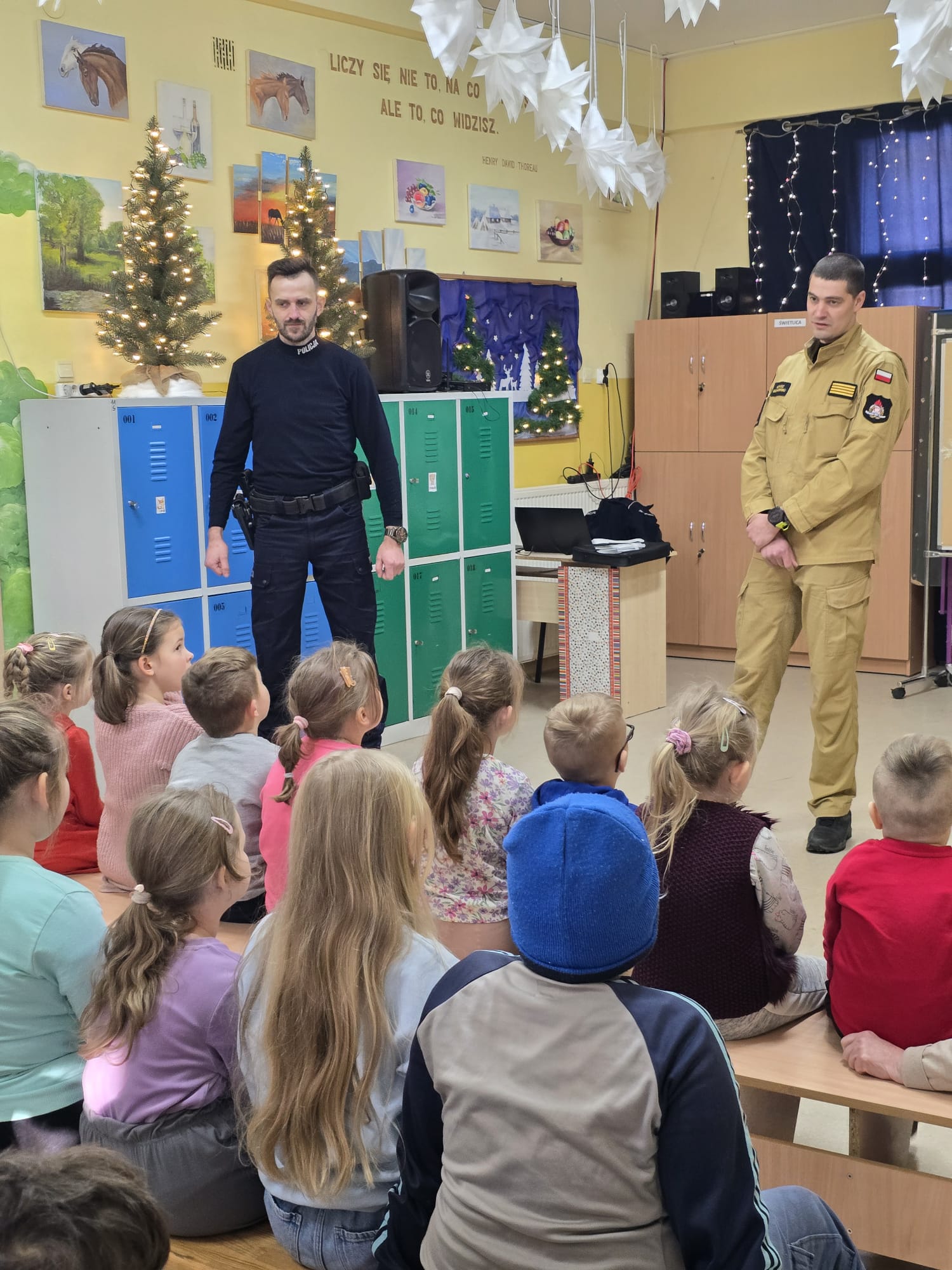 Spotkanie odbyło się w ramach akcji „Bezpieczne Ferie” i poświęcone było zasadom bezpiecznego zachowania podczas zimowego wypoczynku, ze szczególnym uwzględnieniem zagrożeń związanych z wchodzeniem na zamarznięte zbiorniki wodne oraz właściwego zachowania na lodzie.