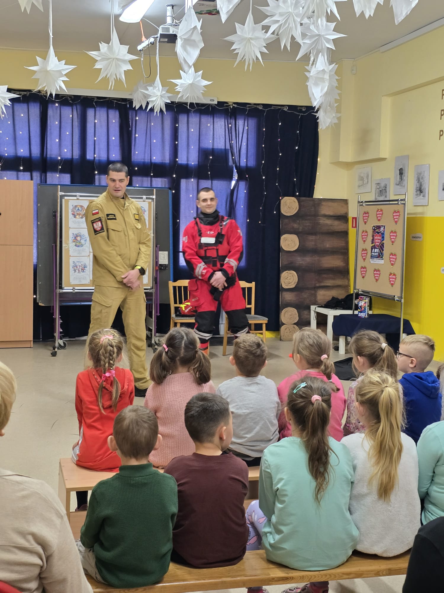 Funkcjonariusze Komendy Powiatowej Państwowej Straży Pożarnej w Chełmnie wraz z funkcjonariuszem Komendy Powiatowej Policji w Chełmnie spotkali się z uczniami Niepublicznej Szkoły Podstawowej w Brukach Unisławskich.