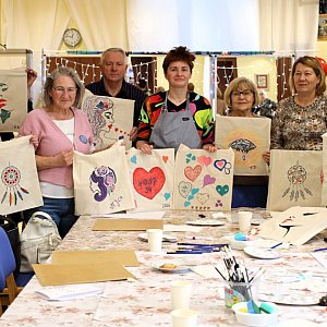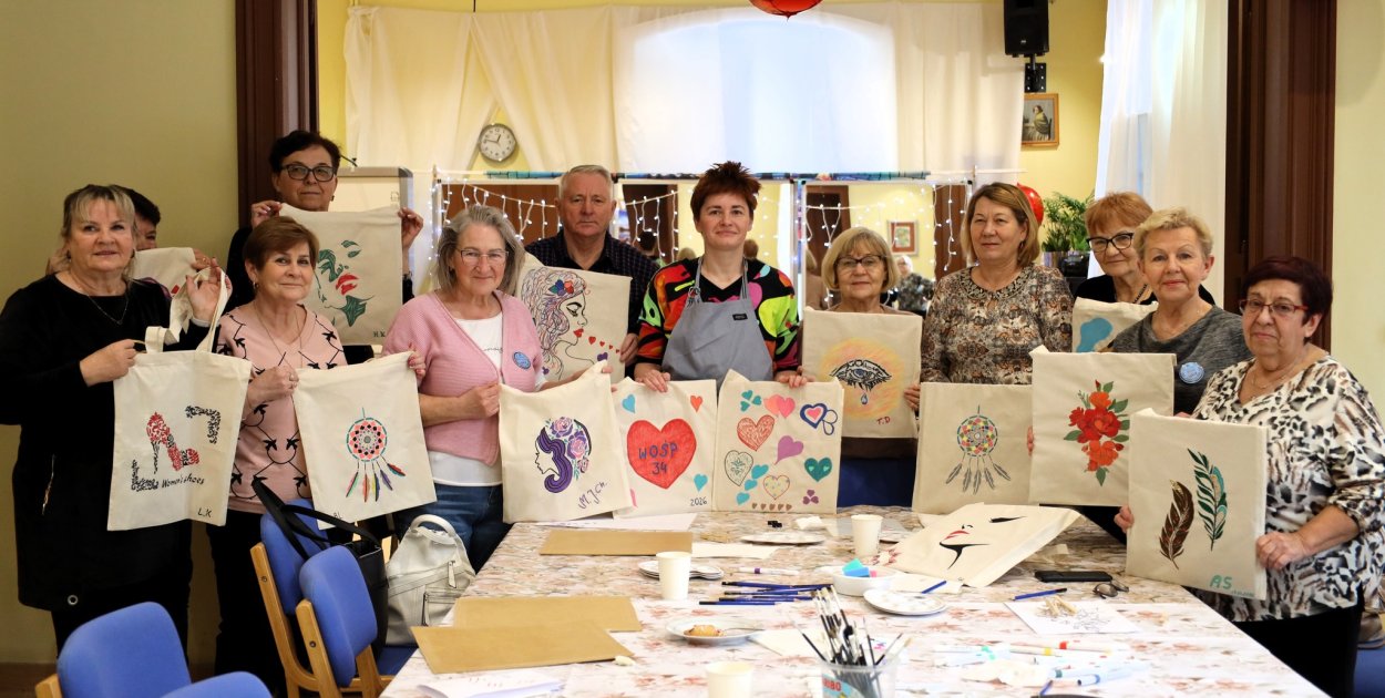Uczestnicy Klubu Seniora działającego w GOK-u w ramach projektu „Senior XXI wieku” po raz kolejny udowodnili, że kreatywność nie zna wieku Tym razem podczas warsztatów malarskich, prowadzonych przez Martę Połomską w obszarze kreatywność i rozwój zainteresowań, seniorzy zamienili zwykłe torby w małe dzieła sztuki.