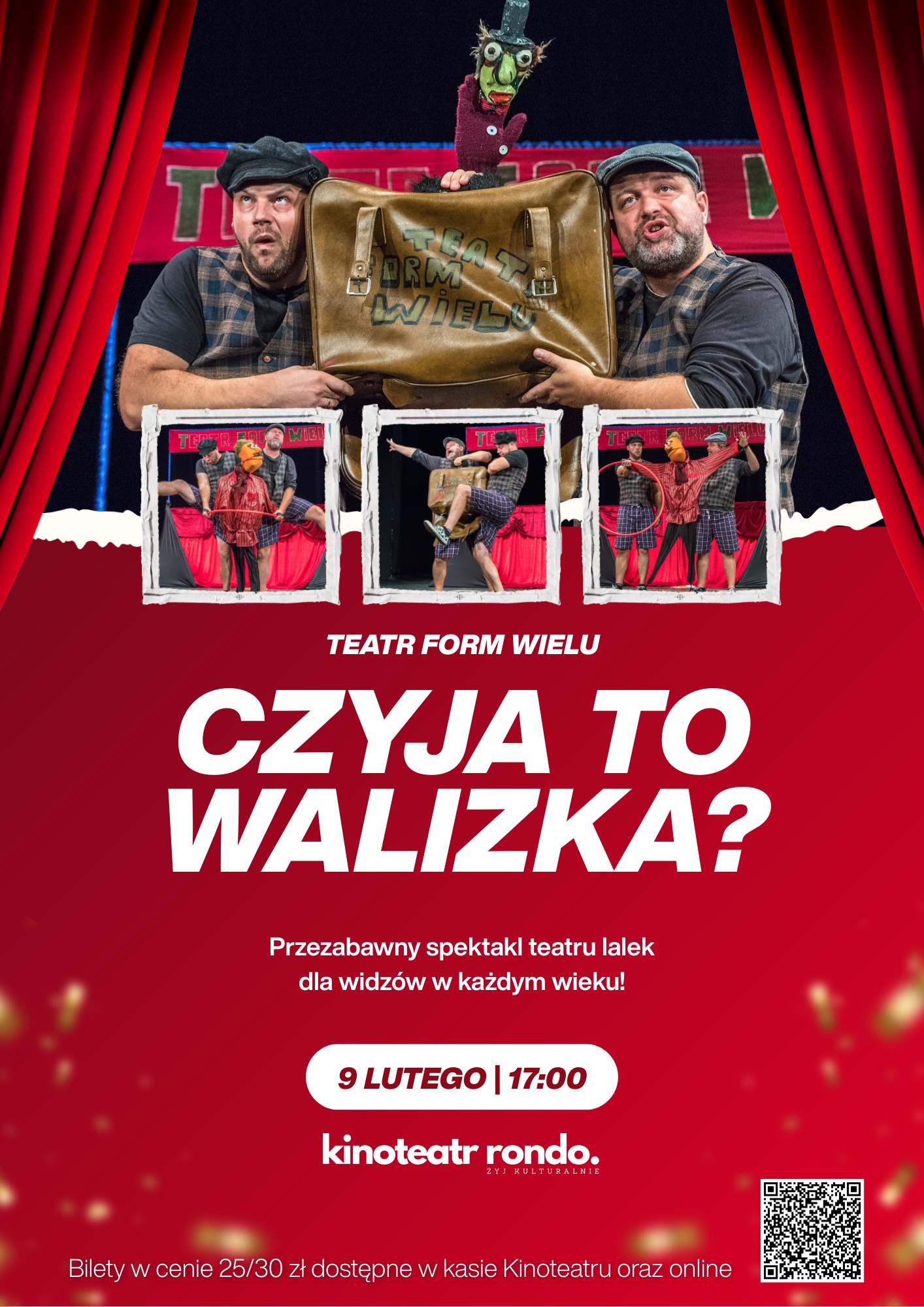 "Czyja to walizka?" - Teatr Form Wielu | spektakl dla dzieci9 lutego o godz. 17:00 w Kinoteatrze Rondo odbędzie się spektakl teatralny „Czyja to walizka?” – przezabawna historia pełna iluzji i magii. Magii teatru lalek, która mieści się w walizce obszernej jak nasza wyobraźnia.