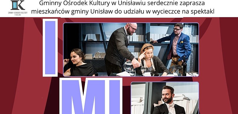 Gminny Ośrodek Kultury w Unisławiu serdecznie zaprasza mieszkańców gminy Unisław do udziału w wycieczce na spektakl komediowy „Imię”, który odbędzie się 17 listopada (poniedziałek) w sali widowiskowej - Centrum Kultury w Świeciu.