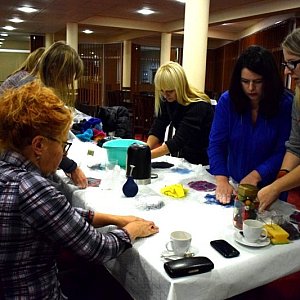 Kiedy za oknem deszcz jesienny i nudzi Cię przesiadywanie przy telewizji pomyśl o tym, by kreatywnie oraz twórczo spędzić czas. Jednym ze sposobów mogą być warsztaty artystyczne, które w Europejskim Centrum Wymiany Młodzieży nad Jeziorem Starogrodzkim prowadzi pani Andżelika Jarych. W sympatycznej atmosferze we wtorkowy wieczór spotkało się grono pań, które poznawały technikę filcowania na mokro i wykonywania różnych broszek z czesanki wełnianej. Z przygotowanych materiałów powstały niepowtarzalne rękodzieła. Była to także doskonała okazja, aby podczas pracy nad ozdobami porozmawiać i integrować się ze znajomymi lub nawiązać nowe kontakty towarzyskie.
