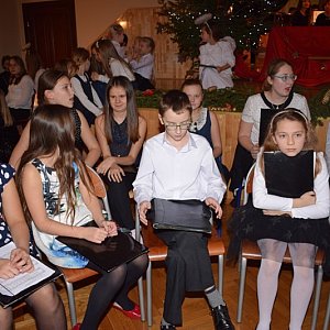 "Anioły są wśród nas..." przekonali się o tym licznie zgromadzeni goście pięknego koncertu zorganizowanego dnia 22.12.2016 o godz. 16:30 w Państwowej Szkole Muzycznej. To magiczne, świąteczne wydarzenie prowadziła pani Aleksandra Gasin. W koncercie pełnym znanych kolęd i pastorałek wystąpili uczniowie sekcji rytmiki, zespoły: fletowy, akordeonowy, smyczkowy, perkusyjny, orkiestra oraz chór szkolny. Po koncercie pracownicy  oraz grono pedagogiczne Szkoły Muzycznej udali się na tradycyjna kolację Wigilijną - przygotowaną przez Restaurację "Spichlerz".