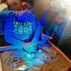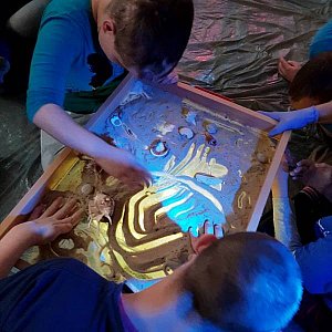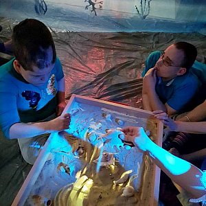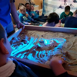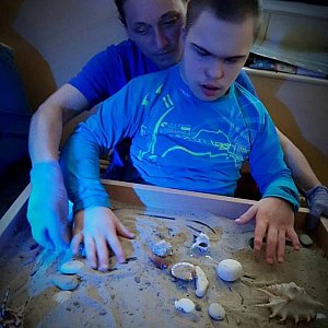 Specjalny Ośrodek Szkolno-Wychowawczy przygotował kolejną niebieską stymulację polisensoryczną, która została przeprowadzona na terenie DPS-u. Nauczyciele na jeden dzień zabrali wychowanków w niezwykłą podróż do morskiego świata, pełnego zadziwiających stworzeń i dźwięków. Można było pobawić się w gorącym morskim piasku z muszlami i kamieniami oraz zanurzyć dłonie w falach zimnej wody, po której pływały statki. Dla każdego uczestnika wyprawy czekała słodka niespodzianka: bezowa muszelka oraz galaretkowe owoce morza w różnych odcieniach niebieskiego koloru.