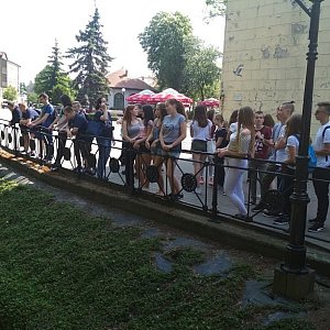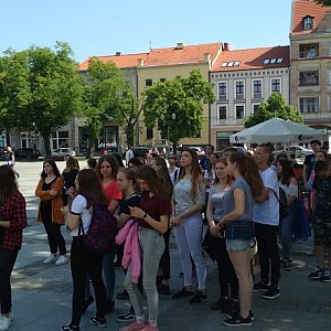 Najpierw odbyło się spotkanie w auli szkolnej, gdzie młodzież integrowała się przy słodkim poczęstunku oraz piosenkach wykonanych przez gimnazjalistki. Później zwiedzili z przewodnikiem - Anną Grzeszną ? Kozikowską nasze miasto. W czasie spaceru nie tylko poznali główne atrakcje Chełmna, ale odwiedzili miejsca, takie jak klasztor czy kościół gimnazjalny związane z Jakubem Wejherem ? założycielem ich rodzinnego miasta.