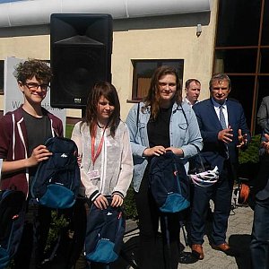 19 maja w Wojewódzkim Ośrodku Ruchu Drogowego w Toruniu odbyły się eliminacje okręgowe 41 edycji ogólnopolskiego konkursu Bezpieczeństwo w ruchu drogowym. Drużyna "Czwórki" w składzie Anna Ośmiałowska, Julia Bagińska, Jerzy Przystup oraz Mikołaj Paczkowski, reprezentująca jednocześnie powiat chełmiński na tym szczeblu konkursu, spisała się bardzo dobrze zajmując wysokie czwarte miejsce. Uczniowie podczas konkursu musieli wykazać się ogromną wiedzą z zakresu przepisów ruchu drogowego, jazdą na rowerze na torze sprawnościowym oraz po miasteczku ruchu drogowego, a na koniec zaprezentować umiejętności z zakresu udzielania pierwszej pomocy. Serdecznie gratulujemy miejsca, wiedzy i umiejętności.