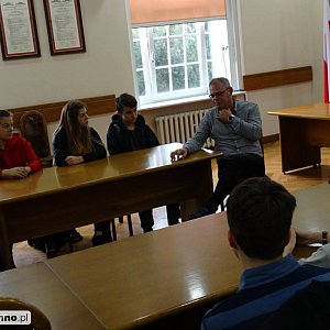 Skąd pochodzi piękny dzwon w holu urzędu? Odpowiedzi na te i inne pytania otrzymaliśmy u źródła, czyli … od samego Burmistrza! Lekcja wiedzy o społeczeństwie w terenie odbyła się dzięki gościnności gospodarza naszego miasta, który opowiedział nam też o blaskach i cieniach swojej pracy. Dziękujemy za poświęcenie nam dwóch godzin mimo napiętego z pewnością grafiku dnia! A wkrótce odwiedzimy … pana Starostę! I nie tylko, bo „Jest tylko jeden sposób nauki. Poprzez działanie.” (Paulo Coelho)