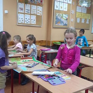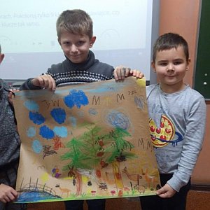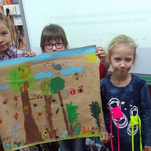 Rozwiązywały krzyżówki oraz wklejały do zeszytu znaczki "Nie pal przy mnie, proszę " . Na zakończenie zajęć wspólnie wykonały dowolną techniką rysunek lasu, jako symbol czystego powietrza. Każda klasa za aktywną pracę otrzymała nagrody - gry edukacyjne.