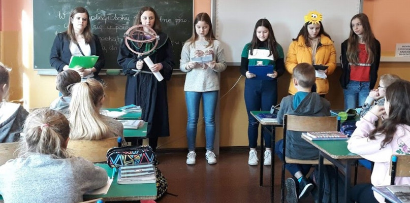 19 lutego minęła kolejna rocznica urodzin sławnego astronoma Mikołaja Kopernika. Z tej okazji uczennice z kółka fizycznego przeprowadziły w klasach IV, V i VI mini lekcję, podczas której przybliżyły sylwetkę tego uczonego oraz zaprezentowały założenia teorii heliocentrycznej, ktòrą ogłosił.
