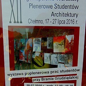 26.07.2016 między godz. 12:00 a 16:30 przy Bramce Grudziądzkiej grupa studentów architektury, która uczestniczyła w XII Ogólnopolskich Warsztatach Plenerowych zorganizowała wystawę swoich prac. Młodzi plastycy przebywali w Chełmnie 10 dni i w tym czasie uchwycili całe piękno naszego zabytkowego miasteczka. Różnorodność stylu zachwyciła mieszkańców, którzy mieli okazję przyglądać się ich dziełom podczas spaceru po Starówce. Sporo osób było zainteresowanych zakupieniem obrazów.