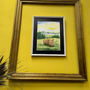 To jej pierwsza wystawa, a podczas wernisażu opowiedziała, że inspiracją był widok z okna – piękne pole, które obserwuje na co dzień. Obraz przypomina, jak wyglądała praca na roli kiedyś, jak wygląda dziś i daje do myślenia, jak będzie w przyszłości. Wpadnijcie zobaczyć, warto!