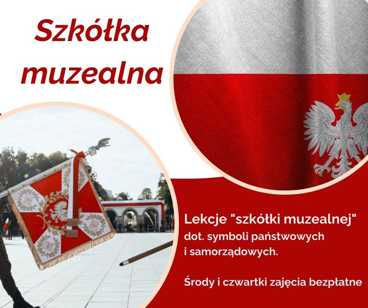 "szkółki muzealnej" prezentujące symbole państwowe i samorządowe.