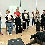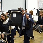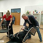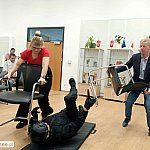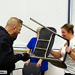Pracownicy ćwiczyli też samoobronę z wykorzystaniem krzesła, sprzętu biurowego czy sprytu własnego ciała do unieruchomienia napastnika, przy czym było sporo śmiechu.