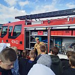Oczywiście duże wrażenie zrobił pokaz wozu strażackiego i sprzętu – dzieci mogły zobaczyć, jak ważna w pracy strażaków jest komunikacja i dobra współpraca w grupie.