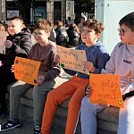Z okazji Tygodnia o Przeciwdziałaniu Przemocy Rówieśniczej odbył się również przemarsz na Rynek w dniu 3 X 2025.