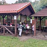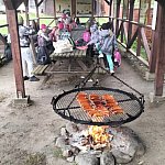 Na zakończenie wszyscy odpoczęli przy ognisku , zajadając pyszne kiełbaski .