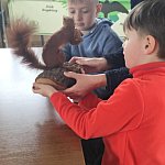 Uczniowie wykonali prace plastyczne z naturalnych roślin, po czym udali się na wędrówkę do lasu w poszukiwaniu roślin i śladów bytowania zwierząt .