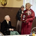 Panią Genowefę odwiedziła wicemarszałek województwa Aneta Jędrzejewska. Jubilatkę odwiedził z życzeniami także burmistrz Piotrkowa Kujawskiego Jędrzej Kucharski. Biogram pani Marianny