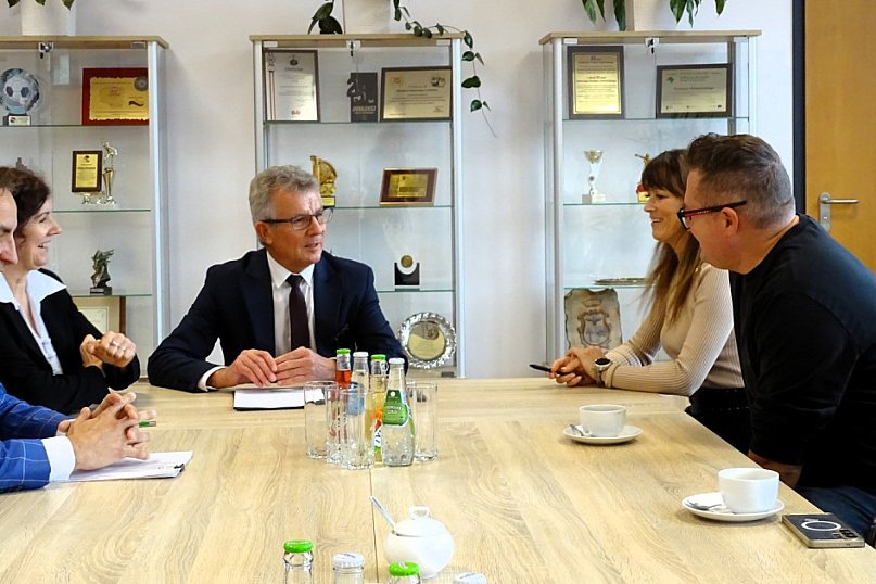 Z przedstawicielami wykonawcy i nadzoru inwestorskiego spotkali się dziś: Starosta Chełmiński Zdzisław Gamański. Wicestarosta Chełmiński Dorota Żulewska, Skarbnik Powiatu Chełmińskiego Janina Siemiątkowska oraz Dyrektor Powiatowego Zarządu Dróg w Chełmnie Mariusz Kalkiewicz.