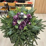 W ruch poszły żywe i sztuczne kwiaty, liście, szyszki, suszki oraz mnóstwo innych naturalnych dodatków. Dominowały oczywiście barwy jesieni – ciepłe pomarańcze, złoto, czerwienie i brązy. Niektórzy uczniowie postawili na eleganckie stroiki stołowe, inni tworzyli efektowne wieńce i wianki – idealne do dekoracji domu lub na groby bliskich. Podczas pracy uczniowie wykazali się nie tylko kreatywnością, ale także znajomością zasad florystyki – zadbali o odpowiedni układ, proporcje i kompozycję. Nie zabrakło też profesjonalnego sprzętu florystycznego: gąbek, drucików, nożyczek i klejów na gorąco – jednym słowem, prawdziwy florystyczny warsztat w akcji! Efekty? Zachwycające! Każda praca miała swój niepowtarzalny styl – od delikatnych i klasycznych po nowoczesne i odważne. W sali unosił się zapach lasu, jesiennych liści i świeżych kwiatów, a uśmiechy uczniów mówiły wszystko – nauka przez działanie to naprawdę świetna zabawa! Podsumowując – to były zajęcia pełne pasji, koloru i dobrej energii!