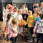 Podczas spotkania dzieci zobaczyły tradycyjne stroje ludowe z Ziemi Chełmińskiej oraz Kujaw i Pomorza, posłuchały muzyki na żywo i spróbowały swoich sił w tańcach narodowych