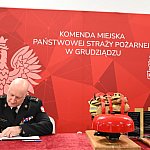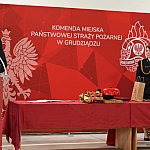 Uroczysty apel był okazją do wręczenia odznaczeń, awansów i nagród dla strażaków z Grudziądza, Świecia, Wąbrzeźna i Chełmna z okazji obchodzonego w tym tygodniu Narodowego Święta Niepodległości.
