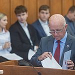 Na zaproszenie przewodniczącej Elżbiety Piniewskiej młodzież skupiona wokół realizowanego przez Laboratorium św. Jana Pawła II projektu „Kuźnia liderów regionu” przeprowadziła pokazową debatę oksfordzką, której tematem była kwestia obwiązującego obecnie limitu dwóch kadencji dla osób sprawujących funkcje wójtów, burmistrzów i prezydentów miast.