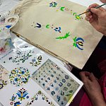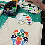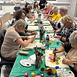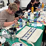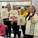 Międzypokoleniowe spotkanie integracyjne w ramach warsztatów „W kręgu pieśni i tradycji”. W przyjaznej atmosferze uczestnicy projektu Klub Seniora „Złoty Krąg” wraz z młodzieżą malowali torby-szoperki inspirowane motywami ludowymi.