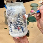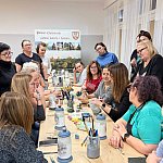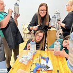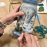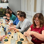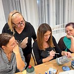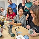 Prowadząca warsztaty Pani Ania Pawlak z Owoce Mojej Wyobraźni - Ania Pawlak tak podsumowuje spotkanie: - Panie poradziły sobie doskonale z projektem, który jest dość wymagający. Niestraszne im było malowanie tła, a nawet gałązek i zasp śniegowych. Atmosfera pełna pozytywnej energii, kreatywności i dobrego humoru. Ależ było wesoło.
