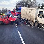 Dziś o godzinie 8:17 do stanowiska kierowania Komendy Powiatowej PSP w Chełmnie wpłynęła informacja o poważnym zdarzeniu drogowym na 116. kilometrze drogi krajowej nr 55, w miejscowości Wabcz (gmina Stolno, powiat chełmiński). Doszło tam do zderzenia dwóch pojazdów – samochodu osobowego marki Volkswagen Golf z samochodem ciężarowym.