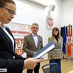 Dziś Starosta Chełmiński Zdzisław Gamański i Wicestarosta Chełmiński Dorota Żulewska – w obecności Naczelnika Wydziału Oświaty Zdrowia Kultury i Sportu Dorota Ćwik oraz dyrektorów szkół i rodziców - wręczyli listy gratulacyjne uczniom, którzy otrzymali stypendia.