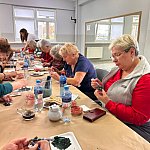 Uczestnicy projektu podczas dzisiejszych zajęć poznali proste techniki zdobienia i własnoręcznie wykonali dekoracyjne medaliony, idealne jako ozdoba lub upominek.
