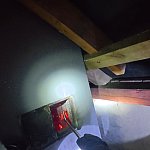 Przy użyciu drabiny strażacy dostali się na dach budynku, skąd zlokalizowali źródło zagrożenia. Pożar sadzy w kominie został skutecznie ugaszony przy pomocy bomby proszkowej. Następnie, aby zapobiec ponownemu zapłonowi, przewód kominowy został dokładnie wyczyszczony z wykorzystaniem kuli kominowej oraz szczotki.