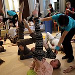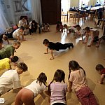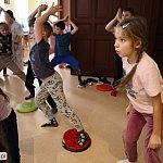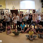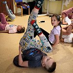 Wtorkowe spotkanie w ramach Zimowska rozpoczęliśmy rozgrzewką w formie gry w odgadywanie przedmiotów, która wprowadziła dzieci w temat dnia. Chwilę później odwiedziła nas instruktorka jogi, pani Mirosława Ledzińska, która poprowadziła relaksujące i rozciągające zajęcia – idealne dla młodych, aktywnych uczestników ferii.