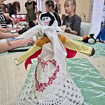 Stąd pomysł na lalki motanki, które powstały podczas warsztatu przy wsparciu pań Joanny i Agnieszki z Fundacja Brama Epok.
