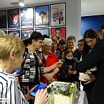 Okazja do wzajemnego poznania, była też podczas oglądania wystawy w holu kinoteatru, a rozmowy toczyły się wartko przy urodzinowym torcie.