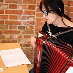 Spotkanie rozpoczęło się od rozgrzewki w postaci przyśpiewek przy nutach akordeonu Pani Hanny Bagrowskiej.