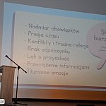 O radzeniu sobie z napięciem i presją mówiła Anna Nowacka – specjalista masażysta i terapeuta. Wystąpienie „Permanentny stres – co zrobić dla siebie” dotyczyło sposobów rozpoznawania stresu oraz prostych metod dbania o równowagę psychiczną.