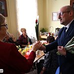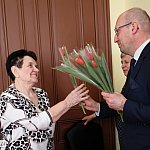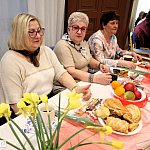 Piątkowe przedpołudnie rozpoczęło się od wręczenia tulipanów przez wójta Kuba Danielewicz dla wszystkich zebranych Pań. Nie zabrakło serdecznych życzeń oraz słodkiego poczęstunku.
