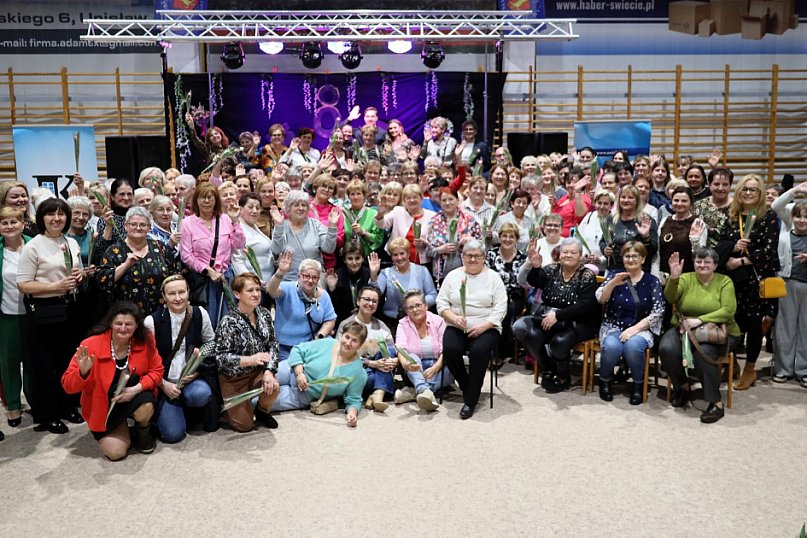 Tegoroczne świętowanie Gminnego Dnia Kobiet w Unisławiu upłynęło w niezwykle radosnej i muzycznej atmosferze Spotkanie w hali widowiskowo-sportowej rozpoczęło się od wręczenia kwiatów wszystkim zebranym Paniom i serdecznych życzeń kierowanych od wójta gminy Unisław Kuba Danielewicz oraz dyrektora GOK-u Paweł Marwitz