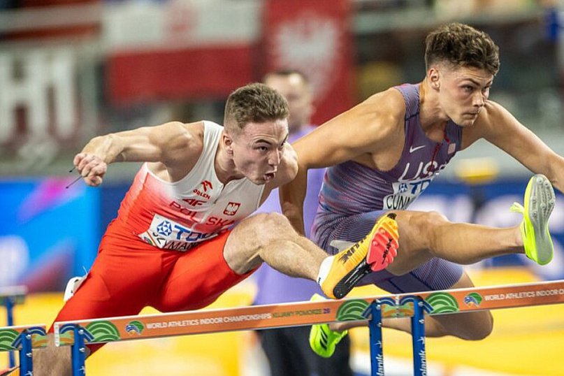 Polscy kibice najbardziej czekali na występy biegaczy. Niepokonany Jakub Szymański – zwyciężył we wszystkich dzisiejszych biegach – porannych eliminacjach, w półfinale i w decydującym starciu pokonał światową czołówkę i finiszował czasem 7,40, zdobywając pierwsze dla Polski złoto w biegu na 60 metrów przez płotki.