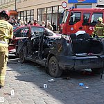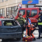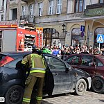 Dramatyczne chwile na chełmińskim Rynku. Dym wydobywający się z rozbitych samochodów i wiele osób poszkodowanych.